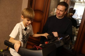 Шарик с желанием Сережи попал в руки директора Фонда святой Екатерины Александра Андреева, который приехал в гости к семье с новогодним подарком – беговой дорожкой. И сразу после сборки Сергей начал ее изучать и пробовать разные режимы скорости, выбирая для себя самый оптимальный.