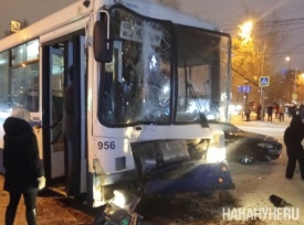 Три человека пострадали в результате аварии с пассажирским автобусом в Екатеринбурге. Водителю автобуса стало плохо за рулем, он не справился с управлением и въехал в фонарный столб.
