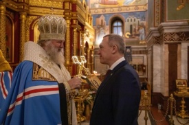 Губернатор Югры Руслан Кухарук принял участие в освящении воды в реке Иртыш на Крещение и окунулся в купель, передает корреспондент Накануне.RU.