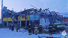 Обрушение двухэтажного торгового центра произошло в Новосибирске. Из-под завалов спасли двух женщин, их осматривают медики.