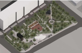 Также будет построено многофункциональное административное здание, предназначенное для размещения служб, обеспечивающих функционирование и комфорт общественного пространства, строители установят общественный туалет.