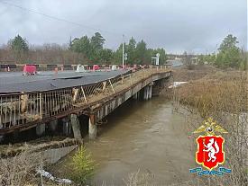 Свердловская Госавтоинспекция ввела временные ограничения движения транспортных средств в связи с частичным разрушением паводковыми водами моста через реку Утка в поселке Перескачка Первоуральского района. Об этом Накануне.RU рассказал пресс-секретарь регионального Главка МВД Валерий Горелых.