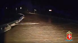 "На данный момент уровень воды на затопленном участке составляет около 10 сантиметров. В целях обеспечения безопасности дорожного движения и недопущения ситуаций, связанных с потерей управления и выходом из строя транспортных средств, проезд на данном участке временно запрещен", - говорится в сообщении.