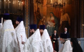 Владимир Путин вместе с мэром Москвы Сергеем Собяниным присутствовал на ночном пасхальном богослужении в храме Христа Спасителя. Службу совершил Патриарх Московский и всея Руси Кирилл.