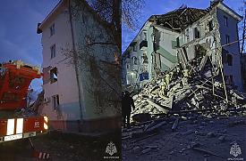 Минувшей ночью беспилотники ВСУ атаковали город, один из ударов пришелся по жилому дому, где произошло обрушение подъезда.