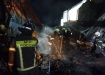 Здание цеха полностью разрушено. Пожарные тушат возгорание в одном из складов.